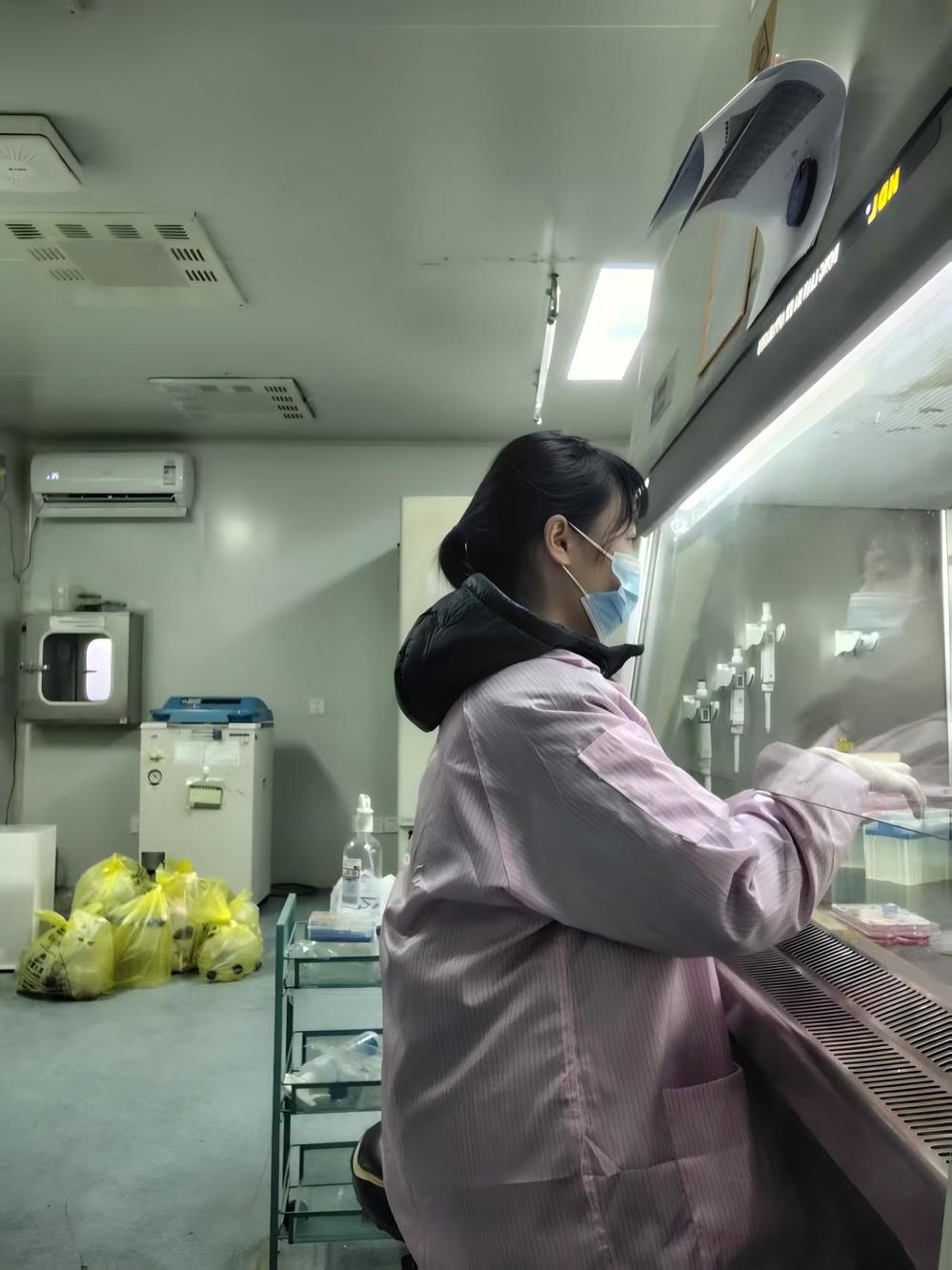 2023级生物技术专业姚策佳同学,于2025年10月进入中国科学院武汉病毒所“科创计划”项目组学习。从校园到研究所,在实验室里有她反复练习的身影,她亲身体验并揭示了“无数遍练习到技术纯熟”的奥妙。科研上,她度过了适应期,实验学习上手很快。做了感染之后,很快进行挑重组病毒的进程。师兄先给她演示了一遍如何用荧光显微镜在绿光下找出重组病毒,然后用马克笔在培养瓶下面圈出再用枪头挑出继续下一轮纯化直到野生型和重组病毒完全分离。第一次上手,她有些慌乱,等把所要的病毒全部圈出来时,三个小时已经过去了,当时有些灰心,师兄给了她很大的鼓励。后面开始第二轮、第三轮纯化,她逐渐掌握了技巧,从开始的三个小时,到两个小时,一个小时,现在她已经可以半个小时完成一个六孔板了,成就感大幅提升。倒半固体平板也很考验手速和技巧。记得第一次倒的时候,状况百出,后面她多次练习,逐渐明白好的效果需要足够多的低饱和琼脂糖,经过一段时间水浴后的培养基,以及快速地混合与加入。在这个过程中她感受到练习很重要,足够的练习才能拥有熟练的技术。